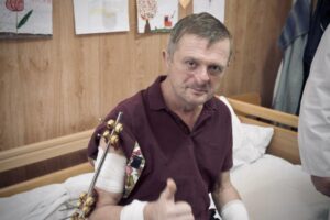 2069 kilometer, zo’n dertig uur reizen… Een delegatie van de Stad Brussel reisde naar Kiev om medische voorraden te brengen en om oorlogsgewonde patiënten te ontmoeten in het ziekenhuis Clinique VI in Kiev en de stadskliniek voor veteranen in Kiev. Uw donaties hebben het mogelijk gemaakt om het succes van chirurgische operaties te vergroten, wat betekent dat de levenskwaliteit van deze gewonde burgers verbetert, die leren om hun gewonde ledematen weer optimaal te gebruiken.