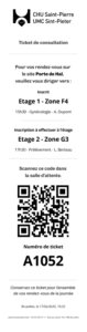 Une fois votre inscription terminée, vous recevrez un ticket vous indiquant la route à suivre pour vous rendre à votre consultation. Sur ce ticket se trouve également un QR Code à scanner à votre arrivée dans la salle d’attente, afin de prévenir le médecin.