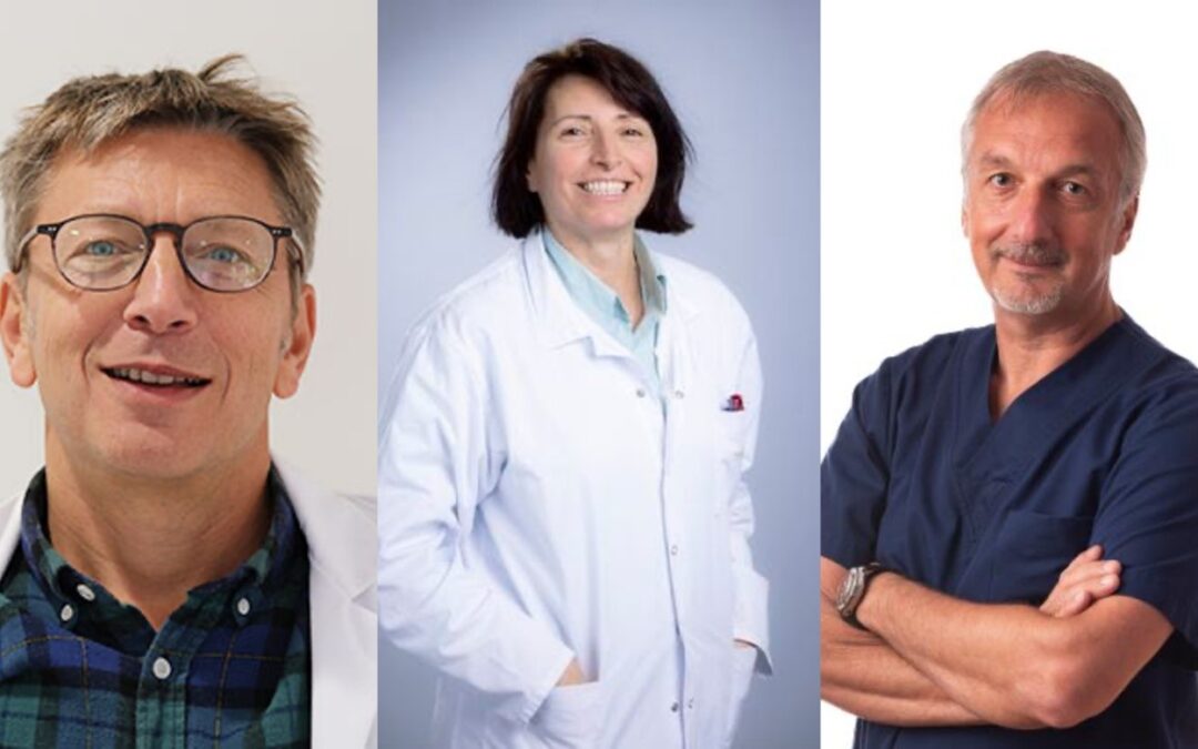 De gauche à droite, les présidents des conseils médicaux : Yannick Manigart, Sylvie Tenoutasse et Alain Bauler, respectivement présidents de conseils médicaux du CHU Saint-Pierre, de l’H.U.B et des Hôpitaux Iris Sud.